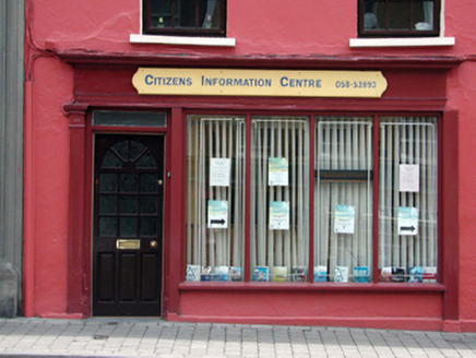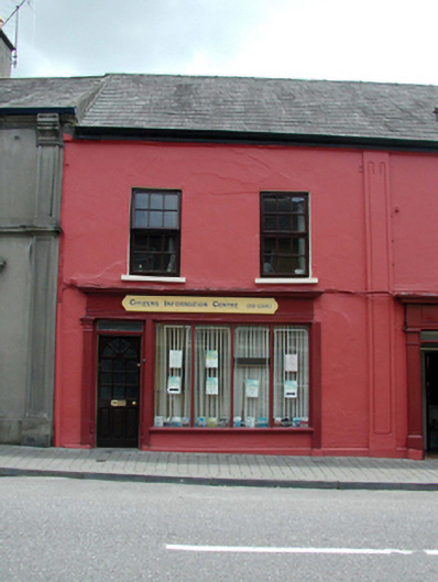 Terraced two-bay two-storey house, c.1820. Renovated, c.1870, with shopfront inserted to ground floor. Renovated, c.1995, to accommodate use as offices. One of a pair. Pitched (shared) slate roof with clay ridge tiles, and replacement uPVC rainwater goods, c.1995, on rendered eaves. Painted rendered walls. Square-headed window openings with stone sills, and replacement timber casement windows, c.1995. Timber shopfront, c.1870, to ground floor with pilasters, replacement fixed-pane timber display windows, c.1995, in four-light arrangement, replacement glazed timber panelled door, c.1995, with overlight, timber fascia over, and moulded cornice. Road fronted with concrete brick cobbled footpath to front.