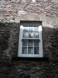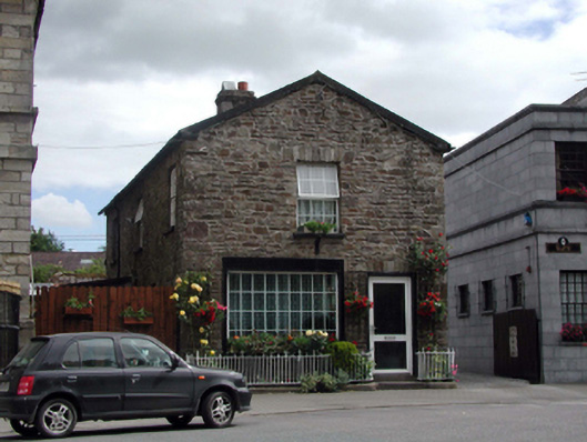 Detached single-bay two-storey gable-fronted rubble stone outbuilding, c.1815, retaining some early fenestration with three-bay two-storey side elevation to north-east, and single-bay two-storey lower return to south-east. Renovated, c.1965, with some openings remodelled to accommodate residential use. Part refenestrated, pre-1999. Pitched (gable-fronted) slate roof with clay ridge tiles, rendered chimney stacks, and cast-iron rainwater goods on rendered eaves. Random rubble stone walls (possibly originally rendered). Square-headed window openings (some remodelled, c.1965) with stone sills (replacement concrete sills, c.1965, to remodelled openings). Replacement timber casement windows, c.1965, with replacement uPVC casement windows, pre-1999, to front (north-west) elevation, and one early 6/6 timber sash window to side (south-west) elevation. Square-headed door opening with replacement glazed aluminium door, c.1990. Set back from line of road with sections of wrought iron railings, c.1890, to front.
