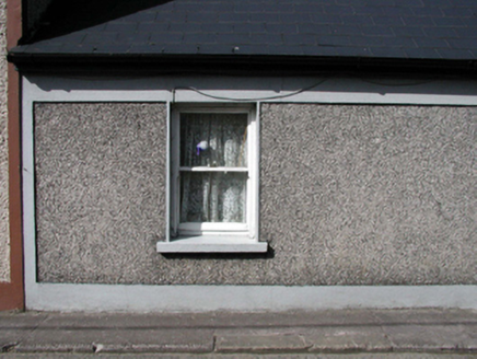 Terraced three-bay single-storey house, c.1830. Refenestrated, c.1880. Renovated, c.1930. Reroofed, pre-1999. Pitched (shared) roof with replacement artificial slate, pre-1999, clay ridge tiles, red brick Running bond (shared) chimney stacks, and replacement uPVC rainwater goods, pre-1999, on timber eaves. Unpainted replacement roughcast walls, c.1930, with rendered strips to ends, and rendered band to eaves. Square-headed window openings with stone sills, and replacement 1/1 timber sash windows, c.1880. Square-headed door opening with replacement glazed timber panelled door, c.1930. Road fronted with concrete footpath to front.