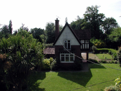 Detached three-bay single-storey Tudor Revival estate manager’s house with half-dormer attic, c.1880, retaining original fenestration with single-bay two-storey projecting bay to centre incorporating open porch to ground floor having jettied bay over, single-bay single-storey box bay window to side (north-east) elevation, and single-bay single-storey return to south-east. Extended, pre-1999, comprising single-bay single-storey lean-to end bay to south-west. Pitched roof (gabled to projecting bay; hipped gabled to return and lean-to to end bay) with profiled red clay tile, decorative red clay ridge tiles having terracotta finials to apexes, red brick Running bond chimney stack, decorative timber bargeboards, and cast-iron rainwater goods on exposed timber eaves. Red brick Flemish bond walls with painted rendered walls to gables having rendered detailing to jettied bay in form of Tudor-style timber framing. Square-headed window openings with timber sills, and red brick hood mouldings to ground floor. Timber casement windows (in tripartite arrangement to ground floor and to box oriel window) with 1/1 horizontal sash window to jettied bay having leaded panes. Ogee-headed openings to open porch. Square-headed door opening with timber panelled door, sidelights, and overlight. Set back from road in partitioned site in grounds shared with Lismore Castle with landscaped grounds to site, and hedge boundary to perimeter.