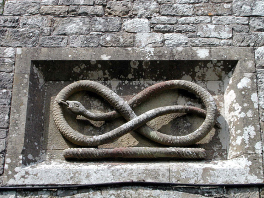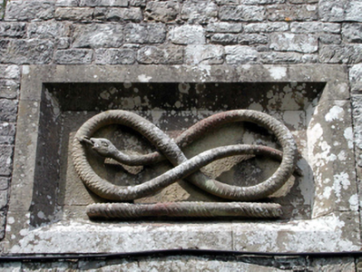 An attractive gateway incorporating high quality stone work, particularly to the carved detailing that includes an elegant serpentine motif of artistic design distinction.