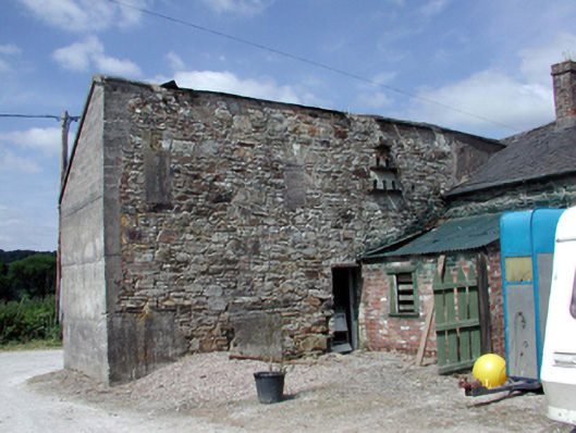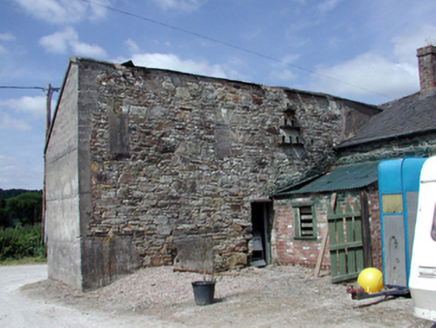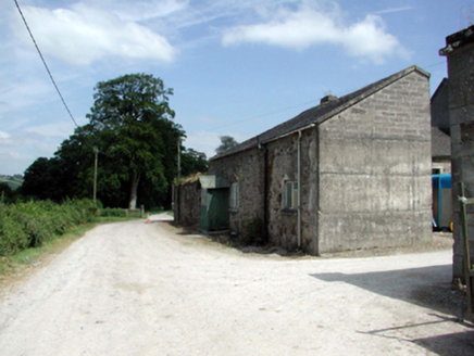 Detached three-bay two-storey rubble stone farmhouse, c.1850, retaining some original fenestration with single-bay single-storey lean-to projecting porch to centre, and two-bay single-storey recessed flanking wings to north and to south on L-shaped plans continuing into single-bay single-storey return to south-east, and three-bay single-storey return to north-east incorporating series of square-headed carriageways. Renovated and refenestrated, pre-1999, with porch remodelled. Pitched slate roofs (lean-to to porch; pitched and hipped to wings) with sections of replacement artificial slate, pre-1999, clay ridge tiles, replacement cement rendered chimney stacks, pre-1999, and replacement uPVC rainwater goods, pre-1999, on squared rubble stone eaves. Random rubble stone walls with lime mortar. Unpainted cement rendered walls to porch. Square-headed window openings with timber sills. 2/2 timber sash windows to ground floor main block with timber casement windows to remainder. Replacement uPVC casement windows, pre-1999, to rear (east) elevation. Series of three square-headed carriageways to return to north-east with timber panelled aprons, and one with timber panelled double doors. Set back from road in grounds shared with Lismore Castle about a courtyard forming western range of farmyard complex. (ii) Detached six-bay single-storey rubble stone outbuilding with half-attic, c.1850, to south. Hipped slate roof (gabled to one open to first floor) with clay ridge tiles, and cast-iron rainwater goods. Random rubble stone walls. Square-headed window openings with squared rubble stone voussoirs, and timber panelled fittings. Square-headed door openings (including one to first floor) with squared rubble stone voussoirs, and timber boarded doors. (iii) Detached seven-bay single-storey rubble stone outbuilding with half-attic, c.1850, to north-east on an L-shaped plan comprising five-bay single-storey range to north with single-bay single-storey gabled projecting bay, and two-bay single-storey range to south. Renovated, c.1975, with one wall partly reconstructed. Pitched and hipped slate roofs with clay ridge tiles, red brick irregular bond chimney stack, and cast-iron rainwater goods on squared rubble stone eaves. Pitched (gabled) corrugated-iron roof to projecting bay. Random rubble stone walls with replacement mass-concrete, c.1975, to wall to west having exposed concrete block over to gable. Series of round-headed apertures to courtyard (south) elevation forming dovecote with cut-limestone surrounds. Painted corrugated-iron-clad walls to projecting bay. Square-headed window openings with stone sills, and red brick dressings. Timber casement windows with some replacement timber casement windows, c.1975. Square-headed door opening with timber lintel, and timber boarded door.