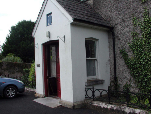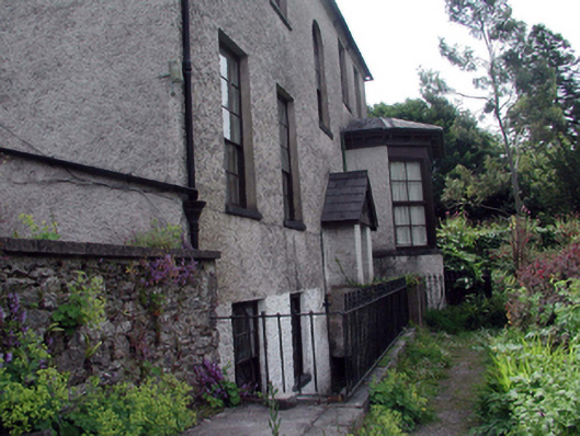 Detached three-bay two-storey over basement deanery, c.1790, on a corner site retaining some original fenestration with five-bay two-storey over part-raised basement rear (west) elevation having single-bay single-storey advanced canted bay window to right ground floor. Renovated and extended, c.1840, comprising single-bay two-storey gabled projecting bay to centre having single-bay single-storey gabled projecting porch, single-bay single-storey canted bay window to side (south) elevation, and single-bay single-storey infill bay to north-east. Renovated, c.1965, with single-bay single-storey gabled advanced open porch added to rear (west) elevation. Part refenestrated, c.1990. Hipped slate roof (pitched (gabled) to additional bay and to porches; hipped to infill bay with courses of chamfered slate) with clay ridge tiles, rendered chimney stacks, and cast-iron rainwater goods on rendered eaves. Unpainted roughcast walls with some sections of painted rendered walls including to gables to additional bay and to porch. Square-headed window openings (one round-headed window opening to rear (west) elevation) with stone sills. 9/6 timber sash windows with some replacement timber casement windows, c.1990. 1/1 timber sash windows to porch. Shallow pointed-arch door opening to porch with replacement timber panelled door, c.1990. Interior with timber panelled shutters to some window openings. Road fronted on a corner site with sections of wrought iron railings to front on rendered plinth, and random rubble stone retaining wall to enclosed garden to rear (west) having sections of cast-iron railings to basement.