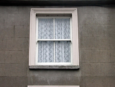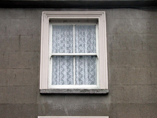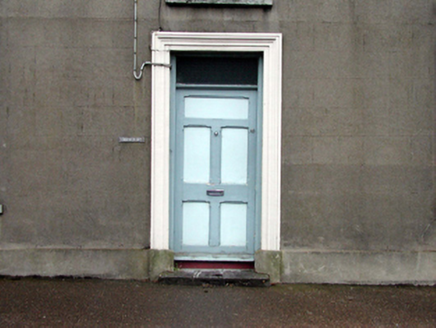 Attached three-bay two-storey house, c.1850, originally detached retaining original fenestration with single-bay single-storey return to west. Pitched slate roofs with clay ridge tiles, rendered chimney stacks, rendered coping, and cast-iron rainwater goods on rendered eaves. Unpainted rendered, ruled and lined walls with rendered quoined piers to ends. Square-headed window openings with stone sills, moulded rendered surrounds, and 2/2 timber sash windows. Square-headed door opening with moulded rendered surround, and timber panelled door having overlight. Road fronted with concrete footpath to front.