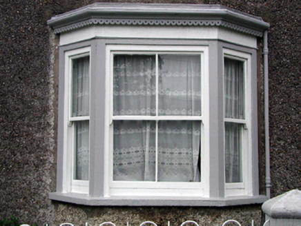 Detached three-bay two-storey house, c.1875, on a corner site retaining original aspect with single-bay two-storey gabled advanced end bay to left having single-bay two-storey canted bay window, two-bay two-storey side elevation to south having single-bay single-storey canted bay window to left ground floor, and single-bay two-storey lean-to lower return to east. Hipped slate roof (gabled to end bay; lean-to to return with gabled section) with clay ridge tiles, rendered chimney stacks, and replacement uPVC rainwater goods, c.2000, on overhanging timber eaves having consoles. Unpainted roughcast walls with painted rendered strips to ends, and painted rendered walls to canted bay window to side (south) elevation having moulded rendered cornice. Square-headed window openings with stone sills. 1/1 timber sash windows with some 2/2 timber sash windows to canted bay windows. Elliptical-headed door opening with timber panelled door, sidelights, and overlight. Set back from line of road in own grounds on a corner site with sections of hoop iron railings to boundary on painted rendered plinth with painted rendered piers, and hoop iron gate.