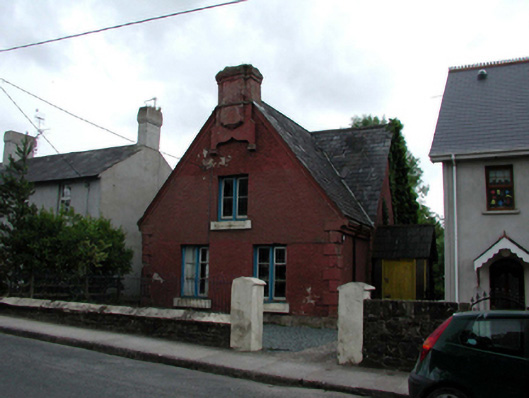 Detached three-bay single-storey parish hall with attic, c.1850, retaining original aspect with single-bay single-storey gabled entrance bay to centre having single-bay single-storey gabled projecting porch, and two-bay single-storey side elevation to north. Now disused. Pitched slate roof (gabled to entrance bay and to porch) with clay ridge tiles, rendered profiled chimney stacks, and cast-iron rainwater goods on moulded rendered eaves. Painted roughcast walls over random rubble stone and red brick irregular bond construction (exposed through partial disintegration of render) with rendered quoins to corners. Square-headed window openings with rendered sills having chamfered detailing, and timber casement windows. Square-headed door opening with tongue-and-groove timber panelled double doors. Set back from line of road perpendicular to road with random rubble stone boundary wall to forecourt having wrought iron railings over, and painted rendered piers.