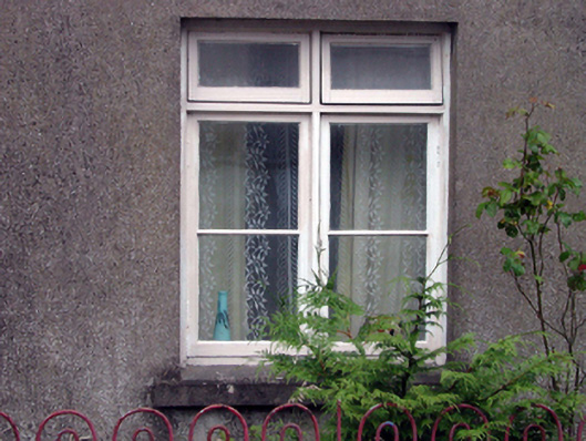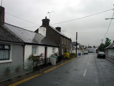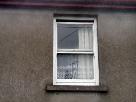 End-of-terrace three-bay two-storey house, c.1825. Refenestrated, c.1875. Pitched slate roof with clay ridge tiles, rendered chimney stacks, and cast-iron rainwater goods on timber eaves. Unpainted rendered walls. Square-headed window openings with stone sills. Replacement timber casement windows, c.1875, to ground floor with replacement 1/1 timber sash windows, c.1875, to first floor. Square-headed door opening with timber panelled door, and overlight. Road fronted with sections of hoop iron railings to front.