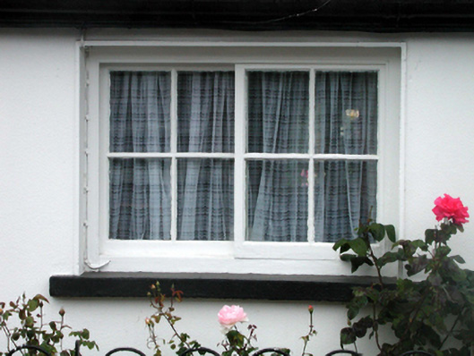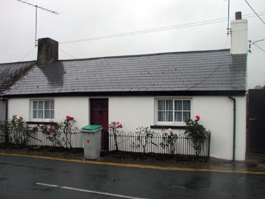 End-of-terrace three-bay single-storey house, c.1825, retaining original fenestration. Reroofed, c.2000. Pitched (shared) roof with replacement artificial slate, c.2000, clay ridge tiles, rendered chimney stacks, and replacement uPVC rainwater goods, c.2000, on timber eaves. Painted rendered walls. Square-headed window openings with stone sills, and 4/4 horizontal sash windows. Square-headed door opening with replacement glazed timber panelled door, c.2000. Road fronted with sections of hoop iron railings to front.