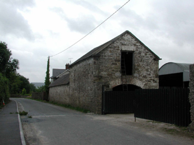 Detached seven-bay single- and two-storey rubble stone outbuilding, c.1895, comprising two-bay two-storey block to north with segmental-headed carriageway to side (north) elevation, and five-bay single-storey range to south having series of segmental-headed carriageways. Pitched slate roofs with clay ridge tiles, and cast-iron rainwater goods on overhanging rendered rubble stone eaves having iron brackets. Limewashed random rubble stone walls with dressed stone quoins to corners. Square-headed window openings with stone sills, and timber fittings having wrought iron bars. Square-headed door openings (including to first floor side (north) elevation) with painted red brick ‘voussoirs’, and tongue-and-groove timber panelled door. Segmental-headed carriageway to side (north) elevation with painted red brick ‘voussoirs’, and no fittings. Series of five segmental-headed carriageways to range to south with painted red brick ‘voussoirs’, and no fittings. Interior with exposed timber roof construction to block to north. Set in grounds shared with Mayfield Lodge with tarmacadam forecourt, and rear (east) elevation fronting on to road.