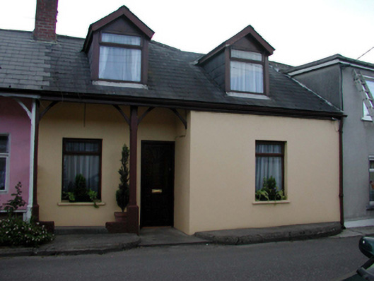 Terraced three-bay single-storey house with dormer attic, c.1910, with two-bay single-storey recessed entrance bay to left. Extensively renovated and extended, pre-1999, comprising two-bay single-storey return to west with dormer attic added. One of a terrace of six. Pitched (shared) roof (gabled to dormer attic windows) with replacement artificial slate, pre-1999, clay ridge tiles, red brick Running bond (shared) chimney stack, timber bargeboards, and iron rainwater goods on timber eaves. Painted replacement cement rendered walls, pre-1999. Square-headed window openings (one in recessed entrance bay) with replacement concrete sills, pre-1999, and replacement timber casement windows, pre-1999. Square-headed door opening in recessed entrance bay having timber posts with brackets, and replacement glazed timber panelled door, pre-1999. Road fronted with concrete footpath to front.