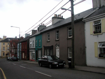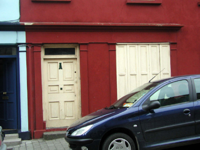 Attached three-bay two-storey house with dormer attic, c.1830. Extensively renovated, c.1880, with (shared) shopfront inserted to left ground floor. Now entirely in residential use. Pitched (shared) slate roof with clay ridge tiles, rendered chimney stacks, square rooflight, and cast-iron rainwater goods on slightly overhanging eaves. Painted rendered walls. Square-headed window openings with stone sills. Replacement 1/1 timber sash windows, c.1880, with decorative wrought iron sill guard to ground floor. Rendered (shared) shopfront, c.1880, to left ground floor with pilasters, timber panelled shutters to display window, timber panelled door with overlight, and rendered fascia over having moulded cornice. Road fronted with concrete brick cobbled footpath to front.