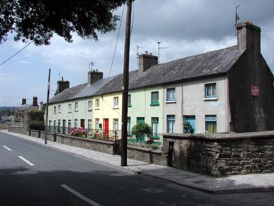 Terraced three-bay two-storey almshouse, c.1725. Refenestrated, c.1975. Reroofed, pre-1999. Now in private residential use. One of a terrace of six. Pitched (shared) roof with replacement artificial slate, pre-1999, clay ridge tiles, rendered chimney stack, and cast-iron rainwater goods on rendered eaves. Painted rendered walls. Square-headed window openings with stone sills, and replacement timber casement windows, c.1975. Square-headed door opening with tongue-and-groove timber panelled door. Set back from line of road with random rubble stone boundary wall to front having sections of wrought iron railings over, and wrought iron gate.