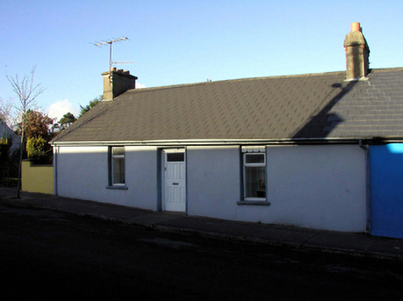 End-of-terrace three-bay single-storey estate worker’s house, c.1830. Refenestrated, c.1980. Reroofed, post-1999. Pitched (shared) roof with replacement artificial slate, post-1999, clay ridge tiles, rendered chimney stacks, and cast-iron rainwater goods on rendered eaves. Painted rendered walls. Square-headed window openings with stone sills, and replacement timber casement windows, c.1980. Square-headed door opening with replacement glazed timber panelled door, c.1980. Road fronted with concrete footpath to front.