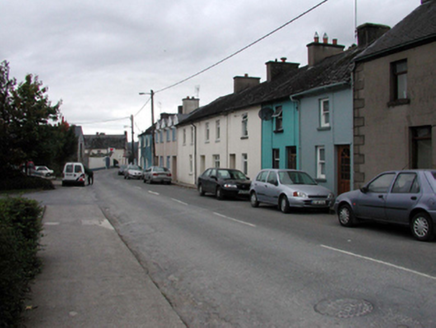 Terraced single-bay two-storey house, c.1880, retaining original fenestration. Reroofed, c.1930. One of a terrace of three. Pitched (shared) roof with replacement artificial slate, c.1930, clay ridge tiles, rendered (shared) chimney stack, and cast-iron rainwater goods on rendered eaves. Painted rendered walls. Square-headed window openings with stone sills, and 1/1 timber sash windows. Square-headed door opening with replacement glazed timber panelled door, c.1980. Road fronted with concrete footpath to front.