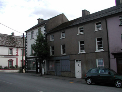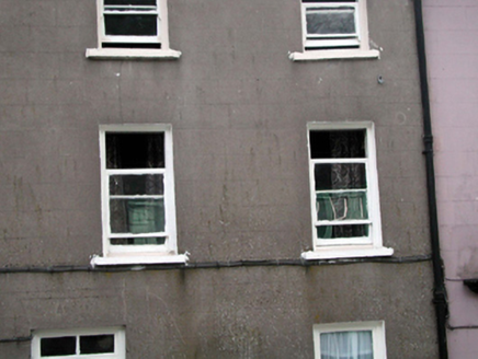 Terraced two-bay three-storey house, c.1830. Refenestrated, c.1880. Reroofed, c.1930. One of a pair. Pitched (shared) roof with replacement artificial slate, c.1930, clay ridge tiles, rendered (shared) chimney stack, rendered coping to party wall, and cast-iron rainwater goods on rendered eaves. Unpainted rendered, ruled and lined walls. Square-headed window openings with stone sills, and replacement 1/1 timber sash windows, c.1880. Square-headed door opening with replacement timber panelled door, c.1880, and overlight. Road fronted with concrete flagged footpath to front.