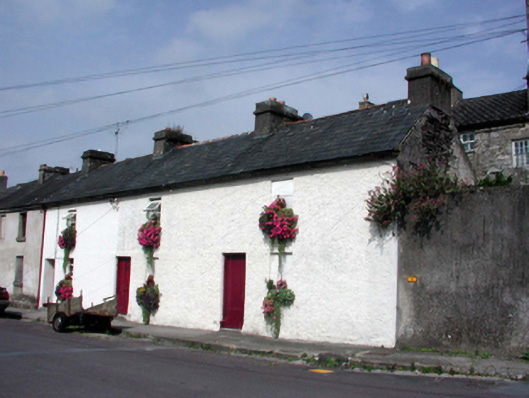 End-of-terrace three-bay two-storey house, c.1850, originally three separate single-bay two-storey houses retaining some early fenestration. Part refenestrated, c.2000. Pitched slate roof with red clay ridge tiles, rendered chimney stacks, and cast-iron rainwater goods on rendered eaves. Painted roughcast walls. Square-headed window openings with stone sills. 1/1 timber sash windows with some replacement uPVC casement windows, c.2000, and with some window openings now blocked-up. Square-headed door openings with timber panelled doors. Road fronted with concrete footpath to front.