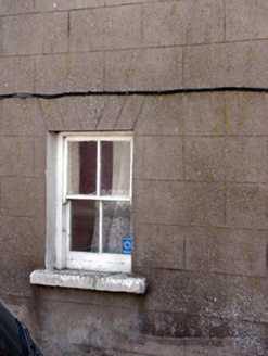 Terraced two-bay two-storey house, c.1850, retaining original aspect. One of a terrace of three. Pitched (shared) slate roof with clay ridge tiles, rendered (shared) chimney stacks, and cast-iron rainwater goods on overhanging rendered eaves having iron brackets. Unpainted rendered, ruled and lined walls. Square-headed window openings with stone sills, and 2/2 timber sash windows. Square-headed door opening with timber panelled door, and overlight. Road fronted with concrete footpath to front.