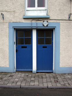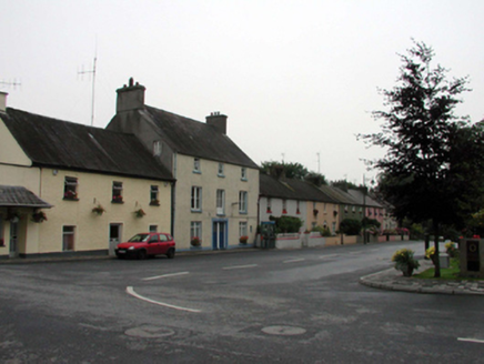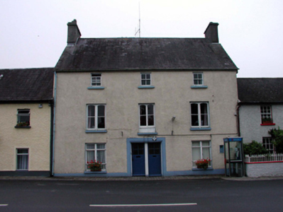 Terraced three-bay three-storey house, c.1780, probably originally detached retaining some early fenestration. Part refenestrated, c.1880. Renovated, c.1930, with door opening remodelled to accommodate use as Garda Síochána Station to part ground floor with apartments to remainder. Pitched slate roof with clay ridge tiles, rendered chimney stacks, and cast-iron rainwater goods on rendered eaves. Painted roughcast walls. Square-headed window openings with stone sills. 2/2 timber sash windows to top floor. Replacement timber casement windows, c.1880, to first floor. Replacement timber casement windows, c.1930, to ground floor. Square-headed door opening remodelled, c.1930, with rendered surround, and pair of replacement glazed timber panelled doors, c.1930. Road fronted with concrete brick cobbled footpath to front.