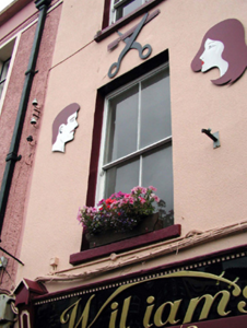 Terraced single-bay three-storey house with dormer attic, c.1810. Refenestrated, c.1910. Reroofed and renovated, c.1985, with replacement shopfront inserted to ground floor, and dormer attic added. Pitched (shared) roof behind parapet with replacement artificial slate, c.1985, clay ridge tiles, rendered chimney stack, replacement square rooflight, c.1985, and cast-iron rainwater goods. Painted rendered walls with rendered stringcourse to parapet having zinc-lined blocking course over. Square-headed window openings with stone sills, and replacement 2/2 timber sash windows, c.1910. Replacement timber shopfront, c.1985, to ground floor with panelled pilasters, fixed-pane (four-light) shallow bowed display window, glazed timber door, fascia over having consoles, and dentilated cornice. Road fronted with concrete brick cobbled footpath to front.
