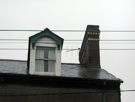 Detached two-bay two-storey house with dormer attic, c.1885, retaining original aspect with single-bay single-storey canted bay window to right ground floor. Pitched slate roof (gabled to dormer attic windows) with clay ridge tiles, red brick Running bond chimney stacks having yellow brick dressings, timber bargeboards, and cast-iron rainwater on rendered eaves. Unpainted rendered, ruled and lined walls with moulded rendered cornice to canted bay window. Shallow segmental-headed window openings (square-headed to dormer attic) with rendered sills, and 1/1 timber sash windows. Round-headed door opening with rendered surround, timber panelled door, sidelights, and overlight having moulded archivolt. Set back from line of road with wrought iron railings to forecourt on rock-faced limestone ashlar plinth having wrought iron gate.