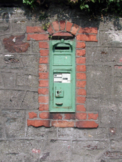An attractive item of street furniture this post box representing a good example of early mass-produced cast-iron. The raised lettering and royal cipher enhance the design quality of the composition, and refer to a period when Ireland was past of the British Empire. The red brick surround emphasises the visual impact of the post box in the wall.