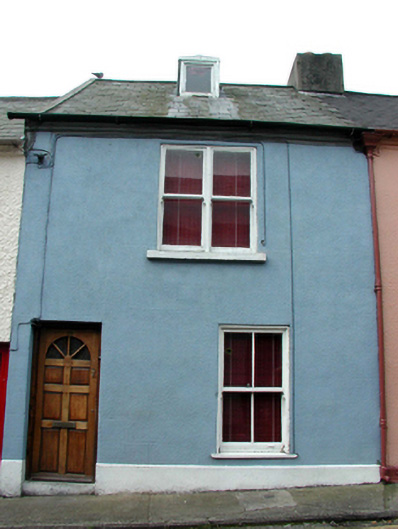 Terraced single-bay two-storey house with dormer attic, c.1870, retaining original fenestration. Pitched (shared) slate roof (shallow gabled to dormer attic window) with clay ridge tiles, rendered (shared) chimney stack, rendered coping, and cast-iron rainwater goods on rendered eaves. Painted rendered, ruled and lined walls. Square-headed window openings (in bipartite arrangement to first floor) with stone sills. 2/2 timber sash window to ground floor with 1/1 timber sash windows to first floor, and timber casement window to dormer attic. Square-headed door opening with replacement glazed timber panelled door, c.1970. Road fronted with concrete footpath to front.