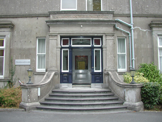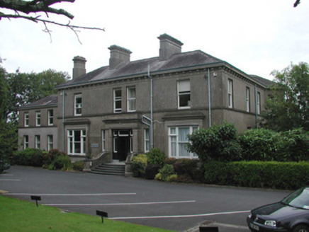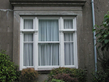 Detached three-bay two-storey over basement house, c.1900, retaining original fenestration with single-bay single-storey advanced porch to centre having single-bay single-storey flanking box bay windows, three-bay two-storey recessed lower wing to north-west, and three-bay three-storey side elevations having single-bay three-storey advanced bays to corners leading to rear (north-east) elevation. Extended, c.1975, comprising four-bay two-storey flat-roofed lower block to north-west. Now in use as offices. Hipped slate roofs with clay ridge tiles, rendered chimney stacks, and profiled cast-iron rainwater goods on moulded cut-stone eaves. Flat roof to additional block behind parapet. Unpainted rendered, ruled and lined walls with moulded rendered courses, and cut-stone cornice on consoles. Square-headed window openings (some in tripartite arrangement) with rendered sills (some forming moulded continuous sill courses). 1/1 timber sash windows. Square-headed window openings to box bay windows with moulded rendered sills, 1/1 timber sash windows with pilaster motifs, fixed-pane sidelights, and moulded cornices over. Square-headed door opening to advanced porch approached by flight of five-cut-limestone curved steps having unpainted rendered swept walls with iron lamp holders, rendered pilaster doorcase, timber panelled door with pilaster motifs, sidelights, overlights, and rendered frieze over with moulded cornice having panelled blocking course over. Set back from road in own grounds with tarmacadam forecourt, and landscaped grounds to site.