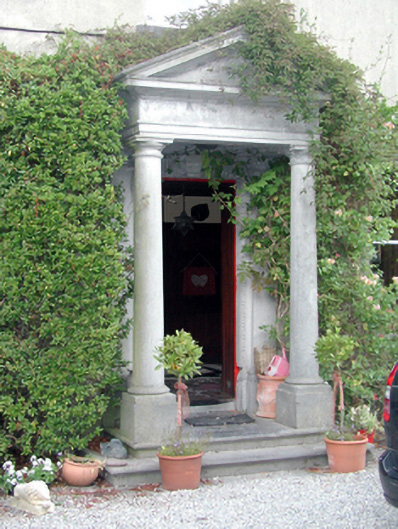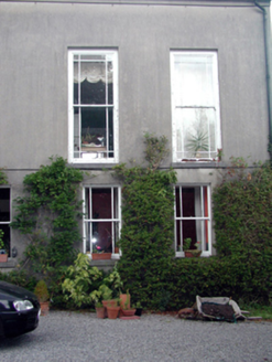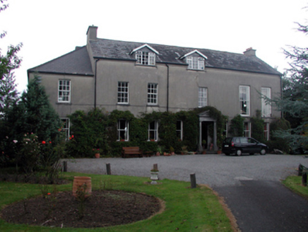 Detached three-bay two-storey over basement house with half-dormer attic, c.1750, incorporating fabric of medieval tower house, c.1550, retaining early fenestration with single-bay single-storey pedimented advanced Doric porch to ground floor. Extended, c.1775, comprising two-bay two-storey end bay with dormer attic to right (east). Renovated and extended, c.1850, comprising single-bay two-storey end bay to left (west). Renovated, c.1975, with half-dormer attic remodelled. Pitched slate roof (gabled to half-dormer attic windows; hipped to end bay to left (west)) with clay ridge tiles, rendered chimney stacks, timber eaves to half-dormer attic windows, and cast-iron rainwater goods on rendered eaves. Unpainted rendered walls. Square-headed window openings with stone sills. 6/6 timber sash windows, and 1/1 timber sash windows having margins. Timber casement windows, c.1975, to half-dormer attic. Square-headed door opening under cut-stone pedimented Doric porch on two cut-stone steps with timber panelled door. Interior with timber panelled shutters to window openings. Set back from road in own grounds with gravel forecourt, landscaped grounds to site, and random rubble stone boundary wall to perimeter.