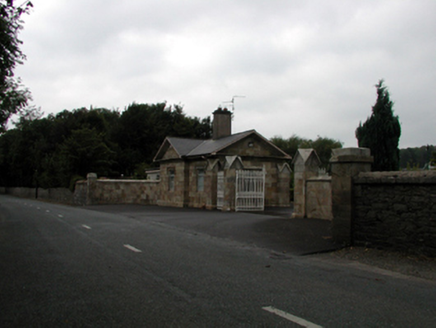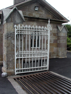 Gateway, c.1845, comprising pair of sandstone ashlar piers having gabled capping, decorative wrought iron double gates having finials, wrought iron flanking pedestrian gates having finials, sandstone ashlar outer piers with gabled capping, and sections of sandstone ashlar curved flanking walls extending to sandstone ashlar terminating piers having gabled capping, and sections of random rubble flanking boundary walls to perimeter of site. Road fronted at entrance to grounds of Bon Sauveur Convent.