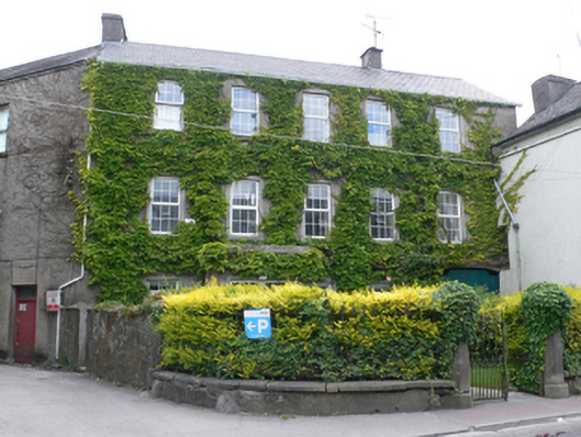 Detached five-bay three-storey house, built c.1830, having flat-roofed porch to front. Slate roof, pitched to south and hipped to north, with rendered replacement chimneystacks, and replacement uPVC rainwater goods. Pebbledash rendered walls with smooth rendered plinth, and render quoins. Porch has cement cornice that extends across rest of façade as string course. Second string course between upper floors. Square-headed windows with render surrounds, limestone sills and replacement uPVC windows. Square-headed doorway to south side of porch with replacement uPVC door. Pseudo-three-centred integral carriage arch to south end of façade with double-leaf timber battened doors. Garden to front enclosed by cast-iron railings of c.1850 on rendered plinth walls with limestone copings, and multi-sided limestone piers of c.1800.