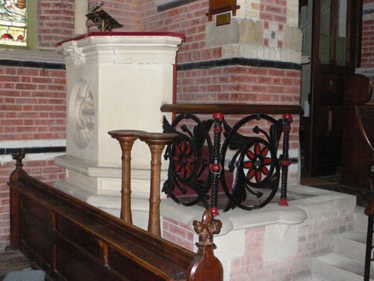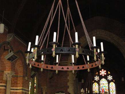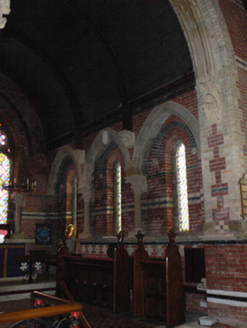 This elegant Gothic Revival church is notable for its asymmetrical form which is enhanced and enlivened by pointed arch openings and oculi. The elaborate highly decorative entrance porch adds depth and interest to the entrance elevation. Designed by William Martin, it is an illustrative example of late nineteenth-century ecclesiastical architecture, the surrounding graveyard and wall plaque adding context. The false transepts are a notable feature, having gables which rise above the eaves course in the manner of a cruciform-plan church, while not projecting beyond the nave walls. The continuous impost course which also serves as a sill course is an indication of the considerable care involved in the design. The interior is highly elaborate. Its brick walls are very unusual for Ireland, and they are enhanced by the polychrome banding. A large variety of high-quality furnishings and ornately embellished structural elements makes Eyrecourt church one of the finest in County Galway. The plentiful wall plaques, commemorating members of the Eyre and other families of Eyrecourt, are god examples of work in various media.