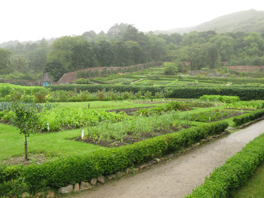 The vast walled garden associated with Kylemore Abbey is one of the most impressive in Ireland. Its high surrounding wall displays good stone and brickwork and the impressive gateways with their stepped pediments add a decorative element while emphasising the wealth of the original owners of the demesne. The complex is well presented and some of its glasshouses have been restored.