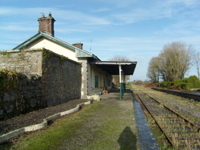This delightful former railway station represents an important element of the transport and civil engineering heritage of County Galway. The station was originally built by the Midland Great Western Railway Company, revamped by the Great Southern and Western Railway Company c.1900 when a new platform and canopy was built, as were the single-storey residence, waiting room, office, toilets and lamp room. The building retains its character, proportions and style as well as original features such as timber sash windows and roof slates. The station, together with the goods shed (30405829) and the signal box, forms an attractive railway complex, which is an integral part of the architectural heritage of the area.