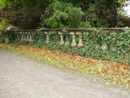 A bridge on the "new" avenue cut through the Dunsandle estate by Denis St. George Daly (1810-93). The bridge, its elegant arch spanning the Craughwell River, displays robust rock faced stone work and originally featured Classically-detailed balustrades on both sides: one balustrade was damaged by collision and replaced with concrete block.