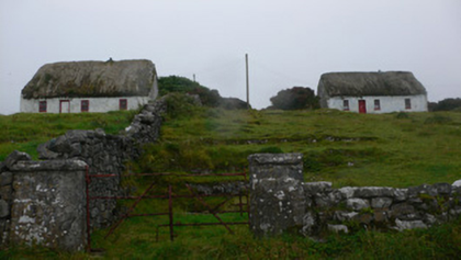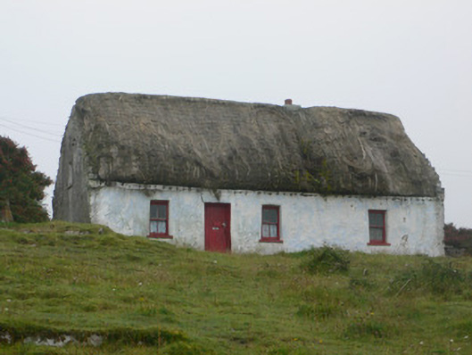 This derelict thatched house is one of the small number of surviving thatched houses on Árainn. The crow-stepped gables and opposed doorways, as well as the roped thatch, make it typical of Atlantic coast and island houses. The presence of a second thatched house adjacent to it adds to its landscape setting.