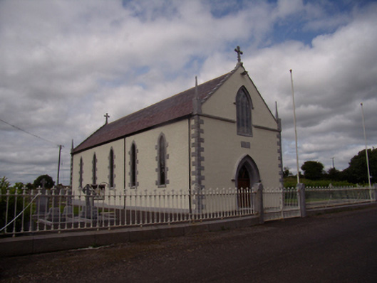 This simple-plan church, erected by the Rev. Andrew Griffin PP, has been relatively unchanged since it was built. Like many such rural churches, it dates from the period following Catholic Emancipation. The form of the building is augmented by numerous fine details, such as the inscribed date plaque, the tracered windows, and the well executed limestone pinnacles and cross finials to the exterior. The interior has good carved timber features, including the gallery and porch, pews and Stations of the Cross.