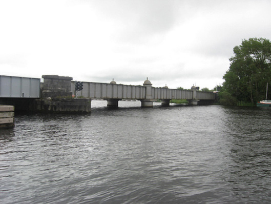 Seven-span road bridge over River Shannon, built 1911, retaining nineteenth-century fabric. Central section resting on Hayes's Island which divides river into two channels. Road supported on steel structure of plate girders with parapets of riveted steel plates. Piers in river on east side of Hayes Island consist of concrete-filled cast-iron cylinders, continuing above parapet level, capped by carved domed caps with finials. Other piers, from bridge of 1834, of dressed limestone masonry the width of bridge, with rounded ends and supporting cut stone parapets. Opening section of bridge over navigation channel, revolving on pivotal support, on Galway bank of river. Abutments on opening span constructed of ashlar limestone masonry retained from nineteenth-century bridge. Detached three-bay single-storey tollhouse on Tipperary side of river, built c.1845, located on Hayes’s Island in centre bridge, having flat-roof porch, addition to rear, hipped slate roof with central stone chimneystack, dressed limestone walls with projecting plinth, rendered walls to addition, and with square-headed and segmental-headed openings with stone sills and two-over-two pane timber sliding sash windows.