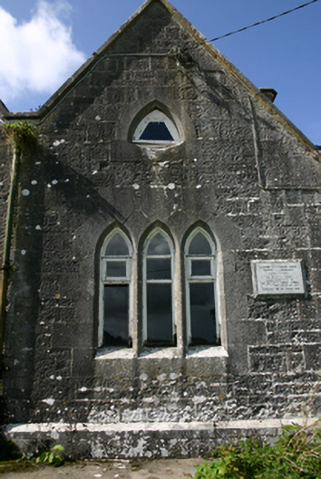 The Gothic Revival architecture of this school mirrors the style of Lough Cutra Castle and enhances the unity of the architectural heritage of the Lough Cutra area. The front elevation with its irregular gables and numerous window styles forms a striking eyecatcher from the main road, while considerable stonemasonry skill is displayed throughout the structure. Michael Cusack, founder of the GAA, taught and lived here (1866 -1871), and is commemorated in Irish on the marble plaque.
