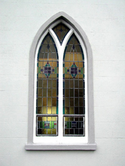 This modest church, situated on a quiet country road looking out to the Atlantic Ocean, is a fine example of early twentieth-century religious architecture. It is not highly ornate, yet its simple elegant detailing and its siting within the landscape makes it a fine contributor to the architectural heritage of the area. Its understated stained glass windows and simple Celtic cross finials add an artistic air to this refined church building.