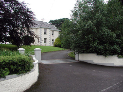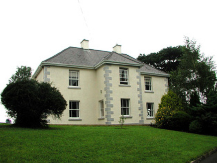 Detached three-bay two-storey house, built c.1850, with projecting central entrance bay, return and extensions to rear. Hipped tiled roof with over-sailing eaves and rendered chimneystacks. Pebbledashed walls with rendered plinth and quoins. Canted-bay window to north elevation with timber casement windows. Timber sash windows to main elevations and replacement uPVC to extension. Timber panelled door with overlight. Two-bay two-storey outbuilding to south with pitched slate roof and external sandstone steps to first floor. House set within its own grounds and bounded by pebbledashed wall with cast-iron gate.