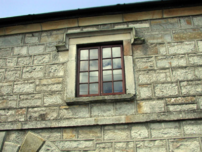 Detached three-bay two-storey former market and court house abutting house to south, built in 1831. Now used as a guest house and pre-school. Hipped tiled roof with over-sailing eaves. Coursed cut stone walls with tooled quoins, string course and cement-based strap pointing. Replacement timber casement windows with label mouldings and stone sills. Segmental-headed arcade with block and start surround and round-headed doorways timber and glazed door in east elevation. Timber panelled door serving upper floors to south-west with spoked fanlight. Plaque with Tottenham family coat of arms, inscription and date.