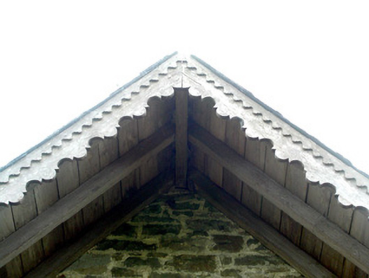 This former gate lodge is one of three such giving access to Lough Rynn Estate. The lodges follow a similar plan with subtle decorative features distinguishing them from one another. The style echoes the architecture and skilled craftsmanship visible around Lough Rynn. The red brick to the window openings here add an interesting deviation and some colour to an otherwise stone façade.