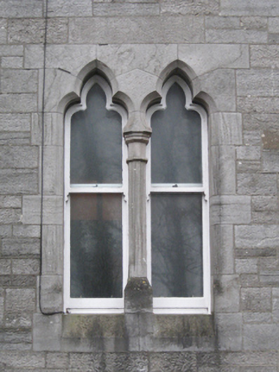 Detached eleven-bay two-storey convent with attic, completed 1889, on a H-shaped plan with two-bay (six-bay deep) two-storey gabled projecting end bays centred on single-bay full-height buttressed gabled breakfront. Closed, 2009. Pitched slate roofs on a H-shaped plan centred on pitched (gabled) slate roof with clay ridge tiles, tuck pointed snecked limestone chimney stacks on chamfered cushion courses on tuck pointed snecked limestone bases having stringcourses below lichen-covered chamfered capping supporting terracotta pots, cut-limestone "slated" coping to gables on drag edged tooled cut-limestone corbel kneelers with Cross finials to apexes, and cast-iron rainwater goods on cut-limestone eaves retaining Maltese Cross-embossed cast-iron hoppers and square profile downpipes. Tuck pointed snecked limestone walls on drag edged tooled cut-limestone chamfered cushion course on plinth with drag edged tooled hammered limestone flush quoins to corners. Pointed-arch central door opening approached by two tooled cut-limestone steps, drag edged tooled cut-limestone block-and-start surround having chamfered reveals with hood moulding over on monolithic label stops framing glazed timber panelled double doors having stained glass overlight. Pointed-arch window opening (first floor), drag edged tooled cut-limestone block-and-start surround having chamfered reveals with hood moulding over on monolithic label stops framing storm glazing over fixed-pane fittings having stained glass margins centred on leaded stained glass panels. Cusped window openings in bipartite arrangement (ground floor) with dragged cut-limestone engaged octagonal mullions, and drag edged tooled cut-limestone block-and-start surrounds having chamfered reveals framing one-over-one timber sash windows. Shouldered square-headed window openings (first floor) with drag edged tooled cut-limestone block-and-start surrounds having chamfered reveals framing two-over-two timber sash windows. Interior including (ground floor): central hall retaining carved timber surrounds to door openings framing timber panelled doors; carved timber surrounds to door openings to remainder framing timber panelled doors with carved timber surrounds to window openings framing timber panelled shutters; chapel with exposed timber roof construction on cut-limestone thumbnail beaded corbels, and pointed-arch chancel arch framing carpeted cut-limestone stepped dais to sanctuary (east) with timber panelled altar below stained glass windows. Set in landscaped grounds.