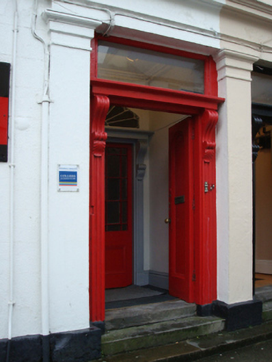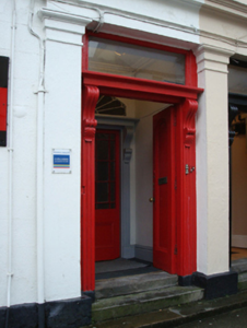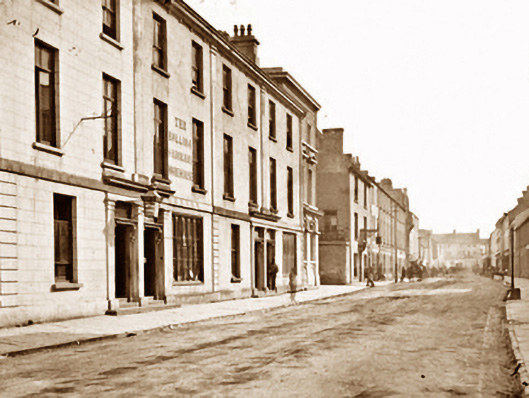 Terraced two-bay three-storey double-pile townhouse, built 1846; extant 1890. Renovated with opening to ground floor remodelled to accommodate alternative use. One of a terrace of five. Pitched double-pile (M-profile) slate roof with clay ridge tiles terminating in rendered chimney stack on rendered base, and cast-iron rainwater goods on thumbnail beaded box cornice having dentil consoles. Rendered, ruled and lined wall (ground floor) on rendered chamfered plinth with rusticated rendered pier to end supporting rendered "bas-relief" stringcourse; rendered, ruled and lined surface finish (upper floors) with rendered pilasters to ends. Square-headed door opening with three cut-limestone steps, timber doorcase with panelled pilasters supporting cornice on entablature on "Acanthus"-detailed fluted consoles, and rendered surround with pilasters supporting cornice on blind frieze on entablature framing timber panelled double doors having overlight. Square-headed window openings (upper floors) with drag edged dragged cut-limestone sills, and concealed dressings framing timber casement (first floor) or two-over-two timber sash (top floor) windows. Interior including (ground floor): vestibule with run moulded plasterwork cornice to ceiling; segmental-headed door opening into entrance hall-cum-staircase call with carved timber Classical-style surround framing glazed timber panelled double doors having fanlight; entrance hall-cum-staircase hall retaining carved timber surrounds to door openings framing timber panelled doors, staircase on a dog leg plan with turned timber balusters supporting carved timber banister terminating in volute, carved timber surrounds to door openings to landings framing timber panelled doors, and run moulded plasterwork cornices to ceilings; and (upper floors): carved timber surrounds to door openings framing timber panelled doors with carved timber surrounds to window openings framing timber panelled shutters. Street fronted with cobbled footpath to front.