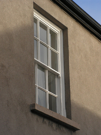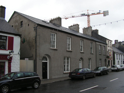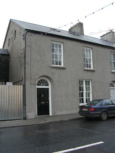 End-of-terrace two-bay two-storey house with dormer attic, extant 1838. Renovated. One of a terrace of three. Replacement pitched artificial slate roof with ridge tiles, rooflights to front (south) pitch, and uPVC rainwater goods on eaves boards on rendered cut-limestone eaves. Replacement cement rendered walls on cement rendered chamfered plinth. Square-headed window openings including one square-headed window opening in bipartite arrangement (ground floor) with concrete sills[?], and concealed dressings framing replacement four-over-four (ground floor) or six-over-six timber sash windows. Segmental-headed door opening with cut-limestone threshold, and concealed dressings having concave reveals framing timber panelled door having fanlight. Interior including (ground floor): entrance hall-cum-staircase hall retaining carved timber surrounds to door openings framing timber panelled doors, staircase on a dog leg plan with balusters supporting carved timber banister, and carved timber surrounds to door openings to landing framing timber panelled doors; and carved timber surrounds to door openings to remainder framing timber panelled doors with carved timber surrounds to window openings framing timber panelled shutters. Street fronted with cobbled footpath to front.