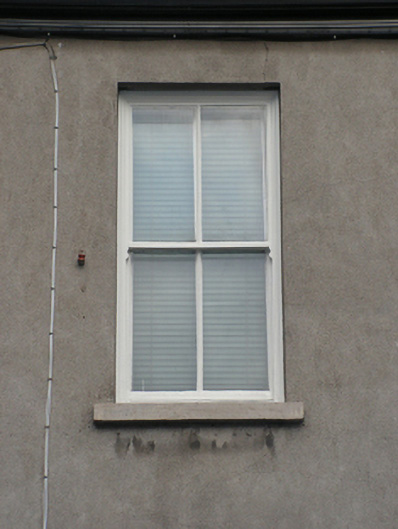 Terraced two-bay two-storey house, extant 1838. Undergoing renovation, 2008. One of a terrace of three. Replacement pitched artificial slate roof with ridge tiles terminating in cement rendered chimney stacks having shallow capping supporting terracotta or yellow terracotta pots, and uPVC rainwater goods on timber eaves boards on rendered cut-limestone eaves. Replacement cement rendered walls on rendered chamfered plinth. Square-headed window openings with concrete sills[?], and concealed dressings framing two-over-two timber sash windows. Segmental-headed door opening with cut-limestone threshold, and concealed dressings having concave reveals framing timber panelled door having fanlight. Interior including (ground floor): entrance hall-cum-staircase hall retaining carved timber surrounds to door openings framing timber panelled doors, staircase on a dog leg plan with balusters supporting carved timber banister, and carved timber surrounds to door openings to landing framing timber panelled doors; and carved timber surrounds to door openings to remainder framing timber panelled doors with carved timber surrounds to window openings framing timber panelled shutters. Street fronted with cobbled footpath to front.