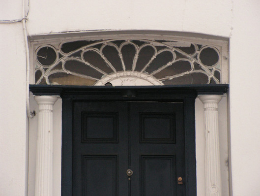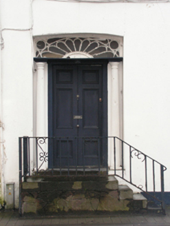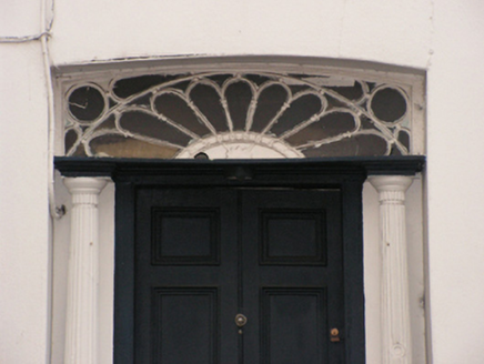 Terraced two-bay two-storey house, extant 1838. Vacant, 2008. Undergoing "restoration", 2011. Pitched slate roof undergoing "restoration", 2011, with clay or terracotta ridge tiles terminating in fine roughcast chimney stacks having shallow capping supporting terracotta or yellow terracotta pots, and cast-iron rainwater goods on slightly overhanging eaves having paired timber consoles retaining cast-iron downpipe. Rendered walls. Shallow camber-headed door opening approached by flight of four drag edged tooled cut-limestone steps, timber doorcase with three quarter-engaged fluted columns supporting "Cyma Recta" or "Cyma Reversa" cornice, and concealed dressings framing timber panelled door having fanlight. Square-headed window openings (first floor) with cut-limestone sills, and concealed dressings framing six-over-six timber sash windows having part exposed sash boxes. Interior including (ground floor): vestibule retaining decorative plasterwork cornice to ceiling centred on "Acanthus"-detailed ceiling rose; camber-headed door opening into entrance hall-cum-staircase hall with carved timber Classical-style surround framing timber panelled door having fanlight; entrance hall-cum-staircase hall retaining carved timber Classical-style surrounds to door openings framing timber panelled doors, staircase on a dog leg plan with balusters supporting carved timber banister, carved timber surrounds to door openings to landing framing timber panelled doors, and run moulded plasterwork cornices to ceilings; and (first floor): carved timber surrounds to door openings framing timber panelled doors with carved timber surrounds to window openings framing timber panelled shutters. Street fronted with cobbled footpath to front.