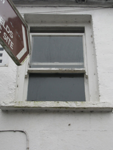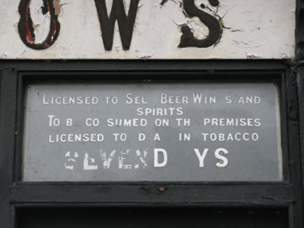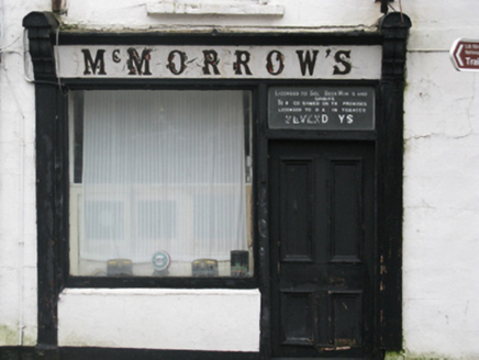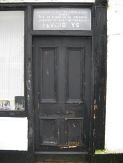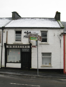 Terraced two-bay two-storey house, extant 1838, on a rectangular plan with shopfront to left ground floor. Now disused. One of a pair. Pitched slate roof with clay ridge tiles, moss-covered coping to gables with rendered chimney stacks to apexes having stepped capping supporting terracotta or yellow terracotta tapered pots, and cast-iron rainwater goods on rendered eaves retaining cast-iron octagonal or ogee hopper and downpipe. Rendered, ruled and lined walls. Timber shopfront to left ground floor. Square-headed window openings (first floor) with shallow sills, and concealed dressings framing one-over-one timber sash windows having part exposed sash boxes. Street fronted with footpath to front.