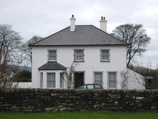 Detached three-bay two-storey Church of Ireland rectory, designed 1897, on a square plan; two-bay two-storey side elevations. Occupied, 1901; 1911. Renovated, ----. Replacement hipped artificial slate roof with ridge tiles, cement rendered chimney stacks having concrete capping supporting ribbed terracotta tapered pots, and uPVC rainwater goods on timber eaves boards retaining cast-iron downpipes. Replacement cement rendered walls bellcast over rendered plinth with rendered band to eaves. Square-headed central door opening with cut-limestone block-and-start surround framing glazed timber panelled door having overlight. Square-headed flanking window opening (west) with paired square-headed flanking window openings (east), cut-limestone sills, and cut-limestone block-and-start surrounds framing one-over-one timber sash windows. Square-headed window openings (first floor) with cut-limestone sills, and cut-limestone block-and-start surrounds framing one-over-two timber sash windows. Square-headed window openings (remainder) with cut-limestone sills, and concealed dressings framing one-over-one (ground floor) or one-over-two (first floor) timber sash windows. Set back from road in landscaped grounds with boundary wall to perimeter having lichen-covered squared limestone soldier course coping.