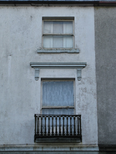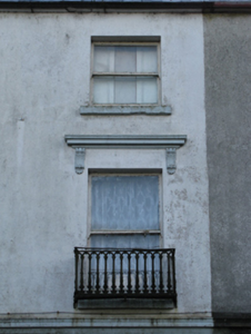 Semi-detached three-bay three-storey townhouse, extant 1895. Reroofed. Disused, 2010. For sale, 2011. One of a pair. Replacement pitched artificial slate roof with clay ridge tiles, lichen-covered coping to gable with rendered red brick chimney stack to apex having stringcourse below capping supporting terracotta pots, and cast-iron rainwater goods on rendered eaves retaining cast-iron downpipes. Rendered channelled wall (ground floor) on rusticated rendered base on rendered chamfered plinth with "Cavetto"-detailed stringcourse; rendered surface finish (upper floors) with rusticated rendered quoins to end; rendered, ruled and lined surface finish (remainder). Segmental-headed door opening with moulded rendered surround framing replacement glazed timber panelled door having overlight. Camber-headed window opening (ground floor) with concrete sill[?], and concealed dressings with moulded archivolt framing one-over-one timber sash window. Square-headed window openings (upper floors) with concrete sills[?], and concealed dressings with hood mouldings over on "Acanthus"-detailed fluted consoles (first floor) or concealed dressings (top floor) framing one-over-one timber sash windows with one-over-one or four-over-four (top floor) timber sash windows to rear (south-west) elevation. Interior including (ground floor): entrance hall retaining carved timber surrounds to door openings framing timber panelled doors; and carved timber surrounds to door openings to remainder framing timber panelled doors with timber panelled shutters to window openings. Street fronted with concrete footpath to front.